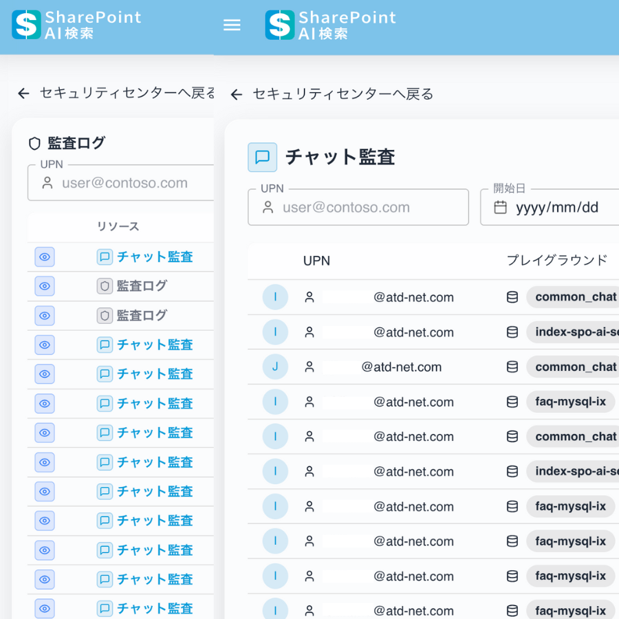 いつ、誰が、どんな質問をして、どんな回答を得たか、不正なアクセスはなかったか等を確認できます。